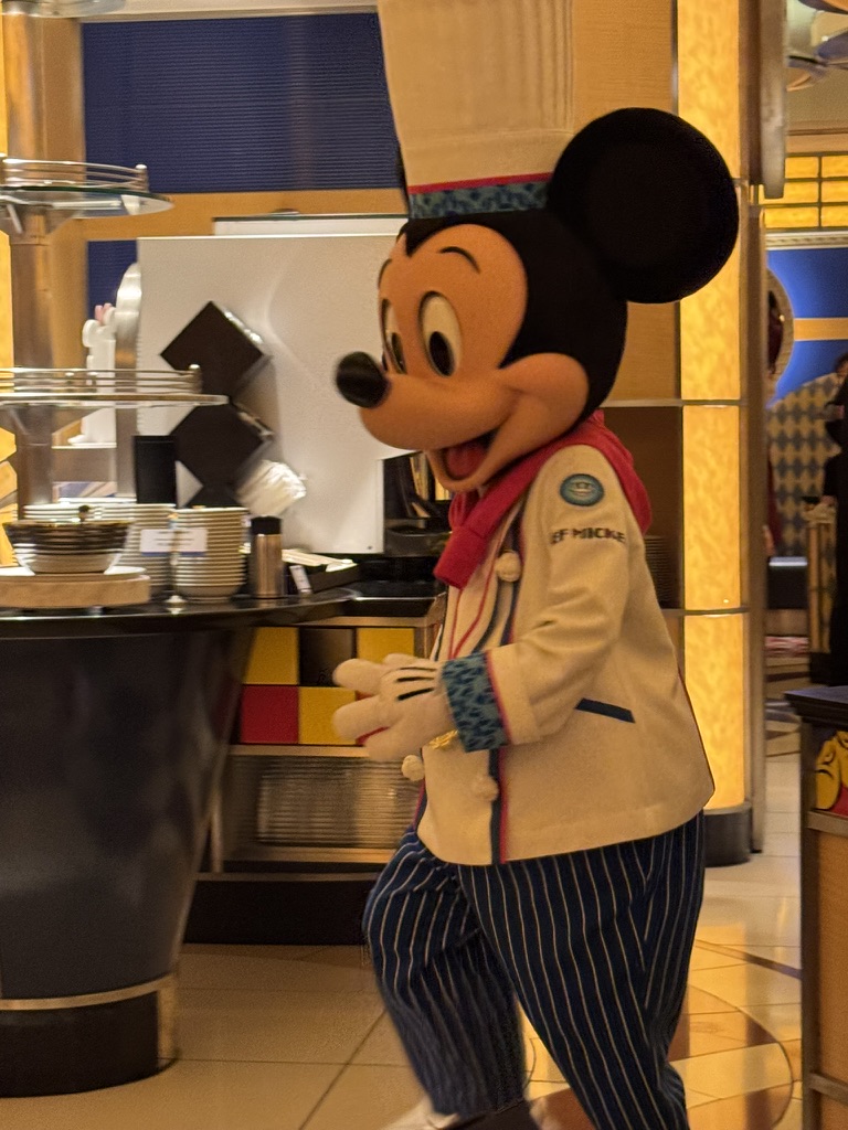 先に撮影や食事があるからか、1番最初に入店したグループは割とグリ順が遅めで、先に他の席からスタート。ミッキーが降臨し、その可愛さで空間を支配します。やっぱこのコスのミッキー本当に可愛い。まじで来てよかった。感動。涙出る。