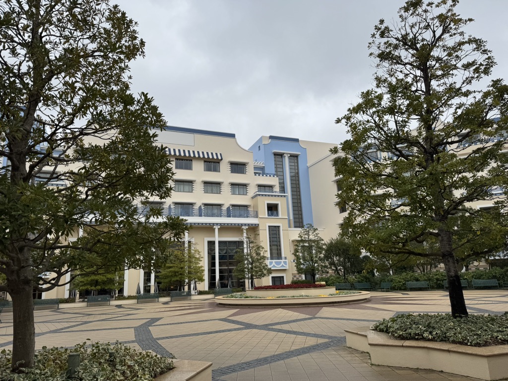 シェフ・ミッキー有するディズニーアンバサダーホテルへの行き方はイクスピアリを通るルートと、外からアクセスするルート(ディズニーに徒歩移動するルート途中で左手にエントランスあり)の2通りがあります。この日は微妙な天気だったこともありイクスピアリルートを選択しました。どちらにせよ大した距離はありませんので気分で選んでもOKです。