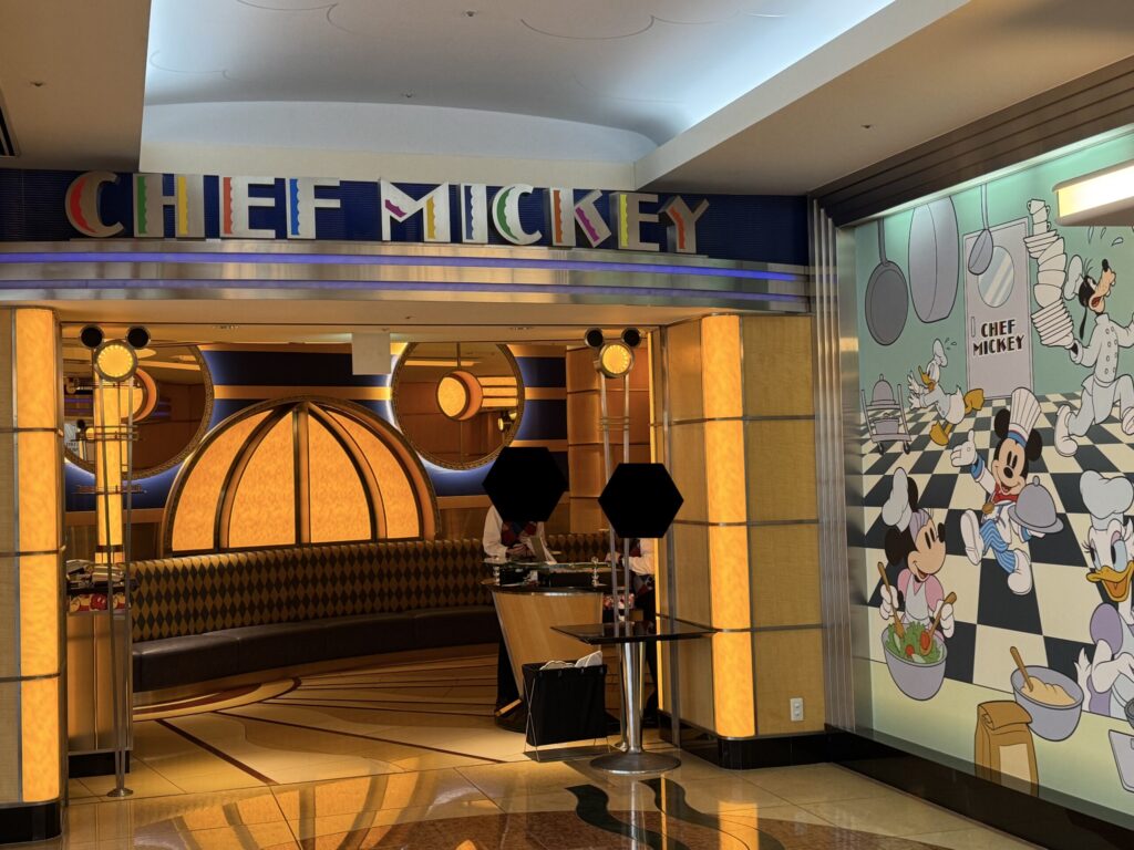 ディズニーアンバサダーホテル内のレストランの1つで「シェフミ」の愛称で知られています。ミッキーが料理を提供するという設定のお店で、食事中にシェフ姿のミッキーとのグリーティングを楽しむことができるのが最大の特徴です。